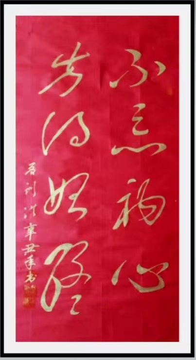 夏训洪老师在边教学边研究书法,在研究练习的几种书体中,特别是对毛泽东主席的气势磅礴,收放自然,运笔潇洒的诗词书法产生了浓厚的兴趣;并在业余时间查阅了大量有关毛主席的书法资料,并不断地进行修炼,力求把握准确、形象、逼真地在当今社会上得以展现;让更多世人观赏后,更加缅怀毛泽东主席的一生丰功伟绩和高深的学识。长风破浪会有时,直挂云帆济沧海。在艺术的道路上,夏训洪老师矢志不渝,不断攀升,抒写出自己更为精彩的艺术人生。