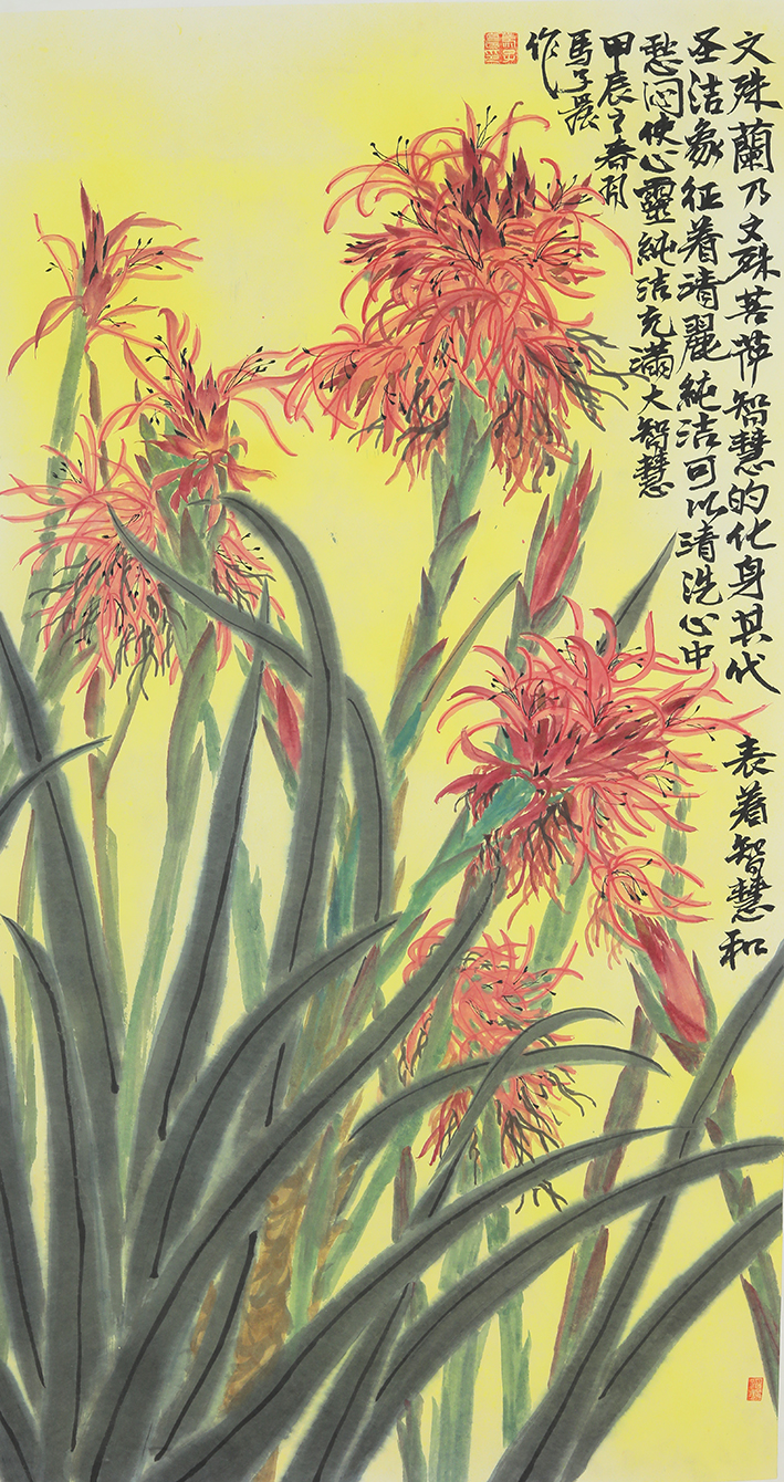 马子晨在中国画道路上不断探寻,展现了传统和现代的融汇,且不张扬的画风,创作出中国画《探覌》系列作品、《没骨花鸟小册》、《大写意花卉》系列等作品。马子晨的画面更多想表达自然界的单纯,没有人为干预的美好,希望可以为读画的观众创造出安静、空灵的空间。